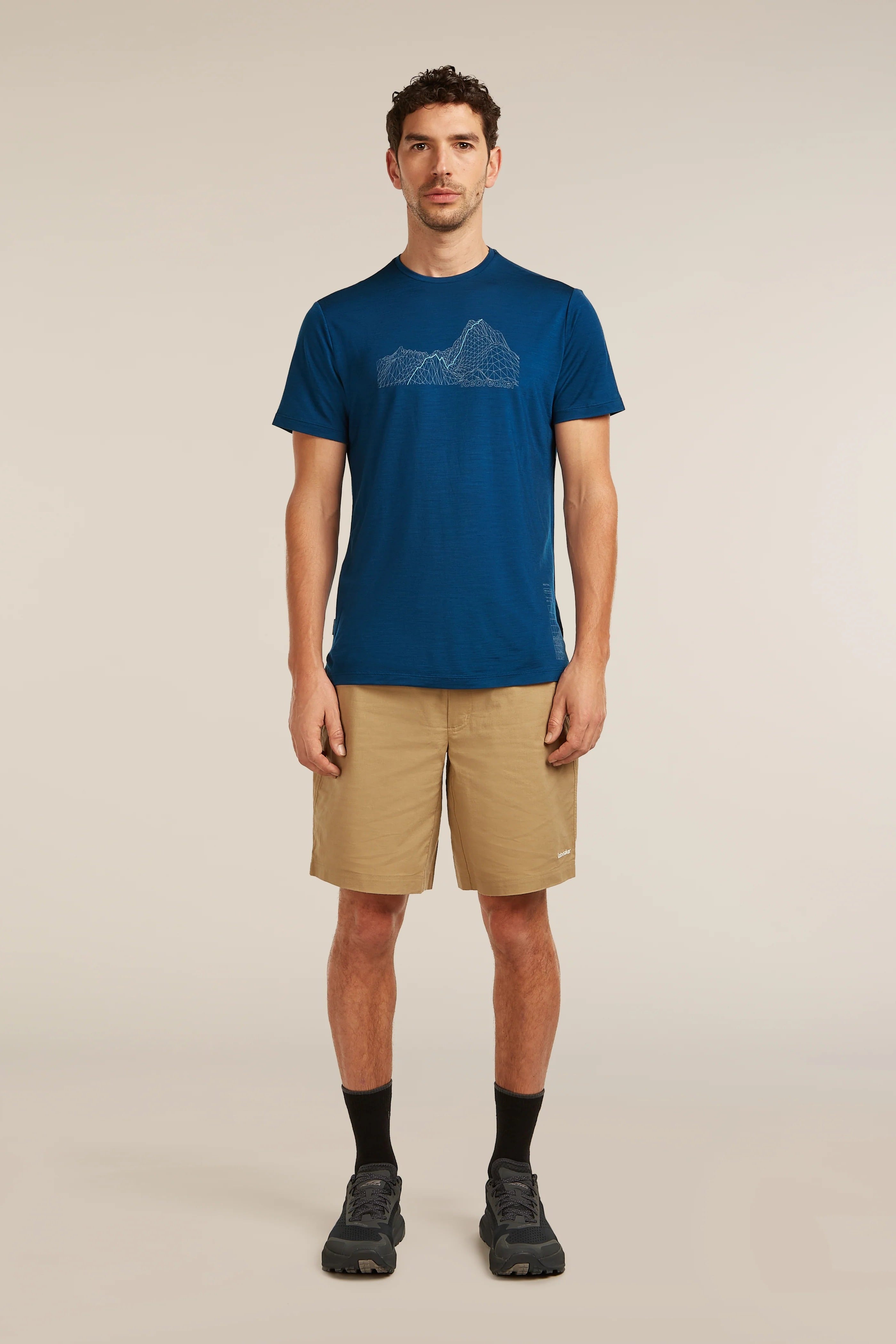 A soft and comfortable men's short sleeve tee made with our Cool-Lite merino wool lightweight jersey. It features a hiking inspired 3D graphic of a technical mountain, mapping the trail ahead and additional infographic with the technical composition of the Sphere fabric to boast how perfect it is for summer runs.