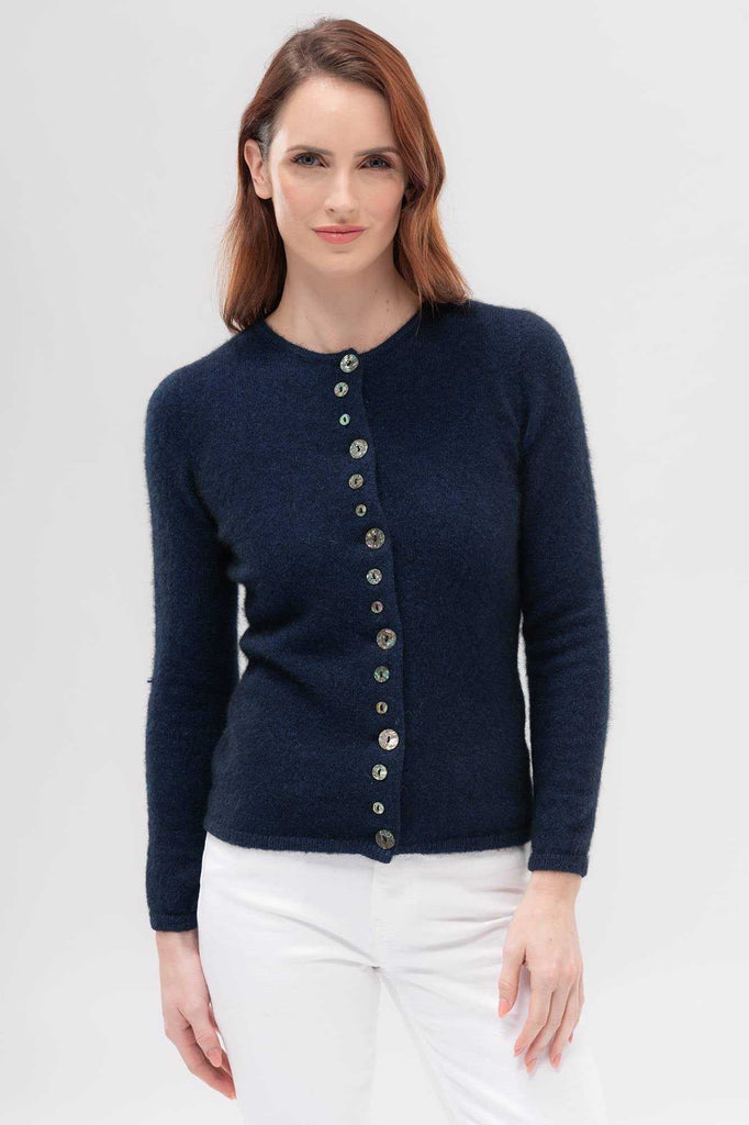 An endearing little cardi inspired by our love of New Zealand. The natural paua shell buttons take on the hue of the knit, and with most of the buttons being decorative, it's easy to get on and off!