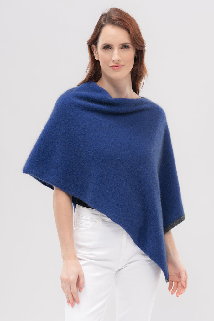 Womens Two Tone Poncho Lapis/Slate 1623