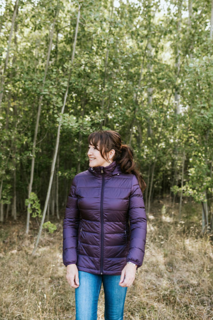 I'm the lightweight packable down jacket bound to be your new favorite winter daily essential. Like all MOKE packable down styles, I have a fantastic warmth to weight ratio, meaning you get all the warmth without the bulk. I can be worn on my own or underneath another jacket as an extra insulator for the coldest conditions. My vertical quilt design down each side flatters all shapes and sizes and my shiny hardware and luxurious fabrics dress up any outfit.  Complete with my own packable bag I am perfect for travel.