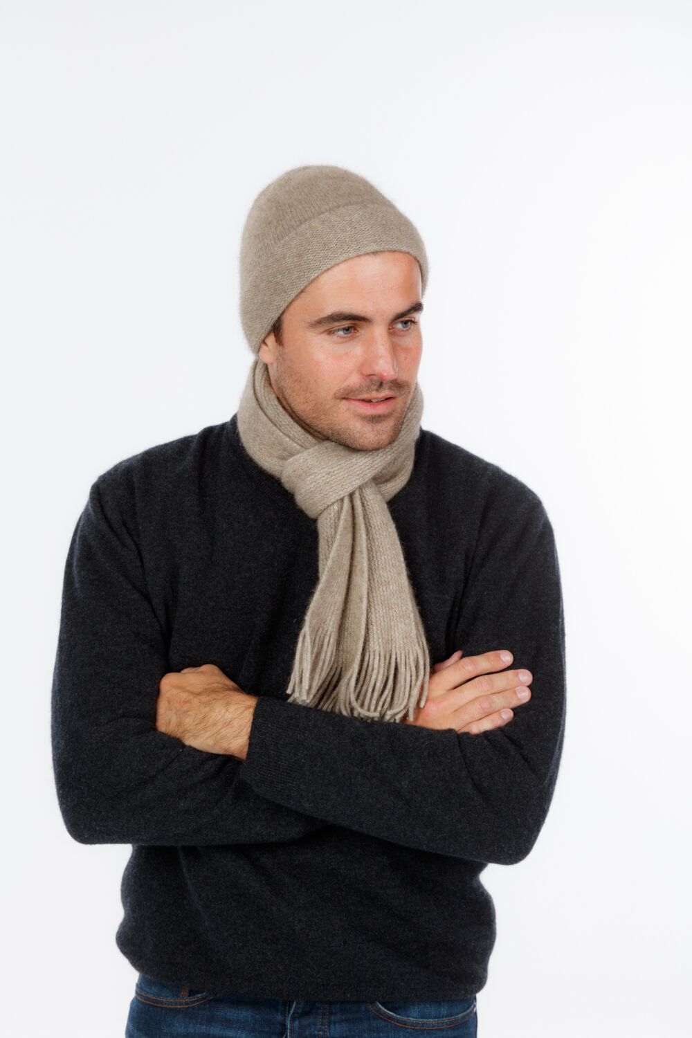Made from a luxurious blend of possum fur and superfine merino wool, this warm and lightweight beanie features a wide turn-back cuff.