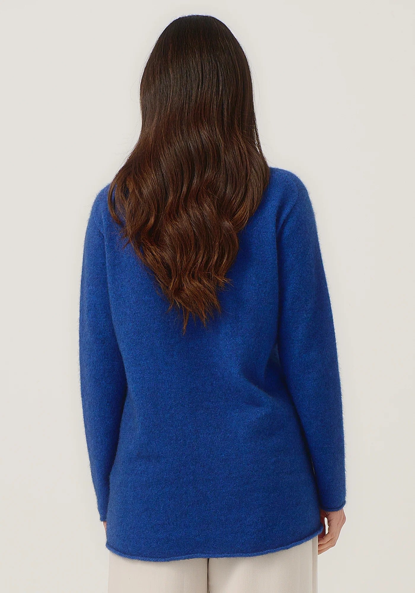As its name suggests every wardrobe needs one of these. The ultimate in cosy comfort, the Essential will take you wherever you want to go. With a dipped back hem and crew neckline, it's a timeless silhouette you'll love. Pair it with the essential snood and - voila! You have a rollneck. It's finished off with Merinomink branding.