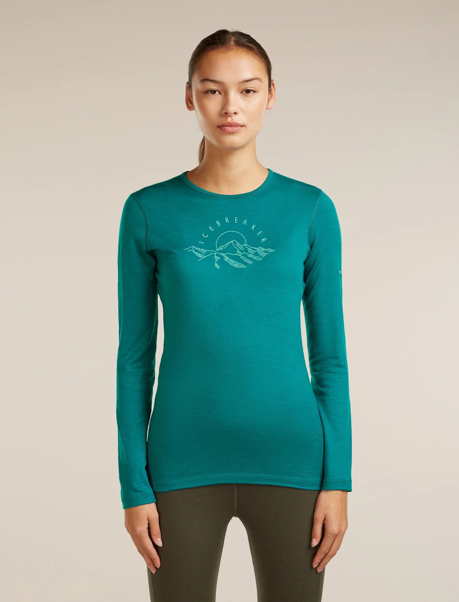 Setting the standard for all others to follow, the Merino 200 Oasis Long Sleeve Crew is a comfortable base layer top that make the perfect foundation for year-round layering. The original artwork features a retro-inspired logo illustration of the sun rising over a mountain peak.