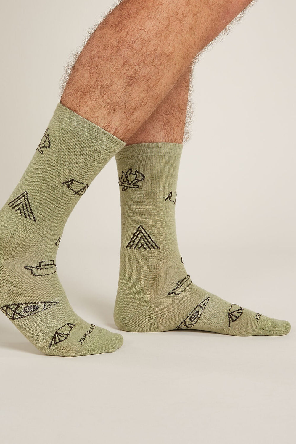 Mens Merino Lifestyle Ultralight Crew Socks Camp Essentials Lichen/Bittersweet 0A574E