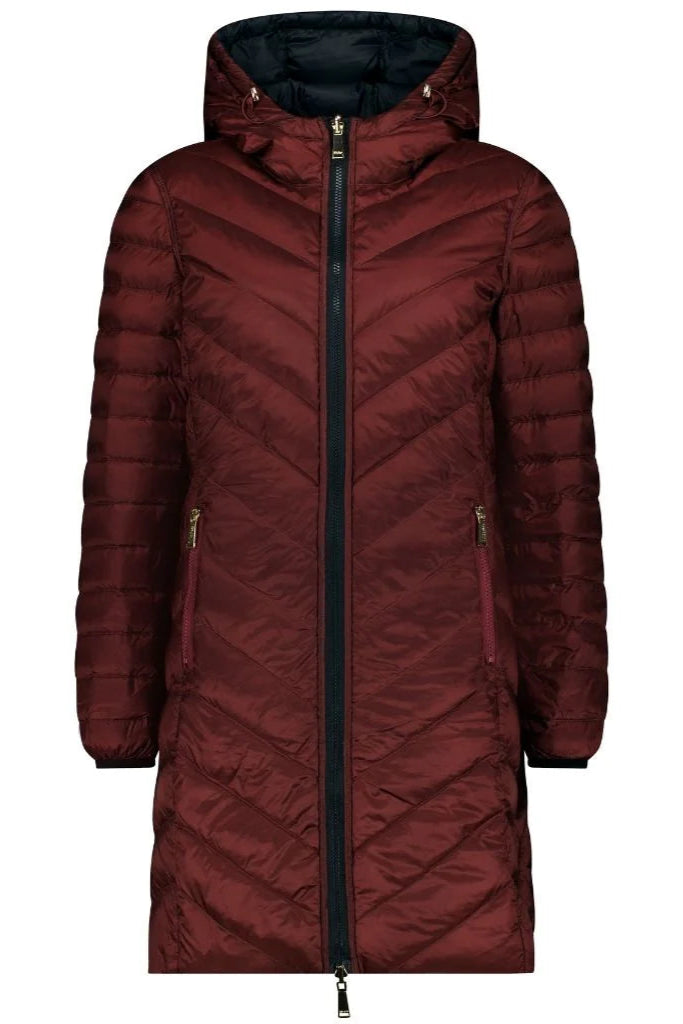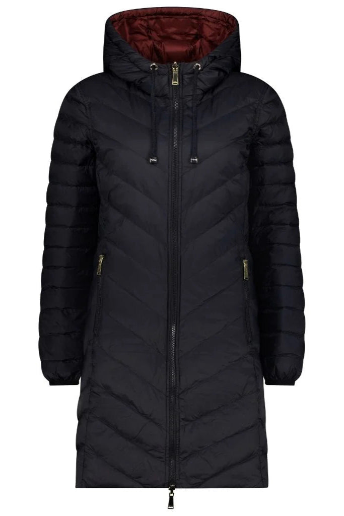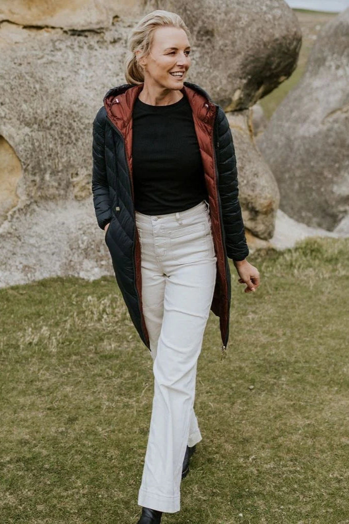 ARNIE by MOKE is a classic knee length coat with flattering chevron quilted side panels. Like all MOKE packable down styles, it has a fantastic warmth to weight ratio, has great breathability and is beautifully soft to the touch. This fully reversible coat is complete with shiny black hardware that gives it extra sleekness. ARNIE has a double ended/reversible front zipper for extra practicality and also comes with its own packable bag, making it perfect for travel or easy storage when on the go.